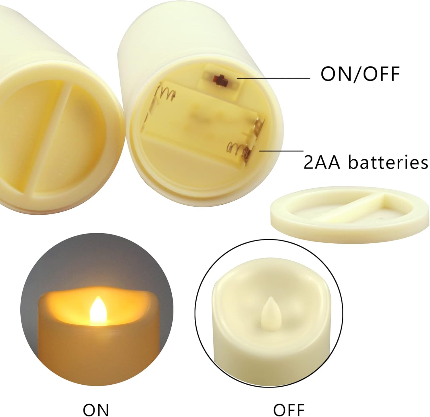 - For outdoor and indoor use. These plastic battery candles are waterproof and designed for outdoor use to decorate your garden, yard, patio, swimming pool, or an outdoor activity such as a BBQ party. Of course, the resin pillar candle can be used indoor to decorate your fireplace and rooms as well. Used as a decorative light, a flameless LED candle is as good as a real candle. Flameless candle creates a warm, peace, and romantic ambiance.