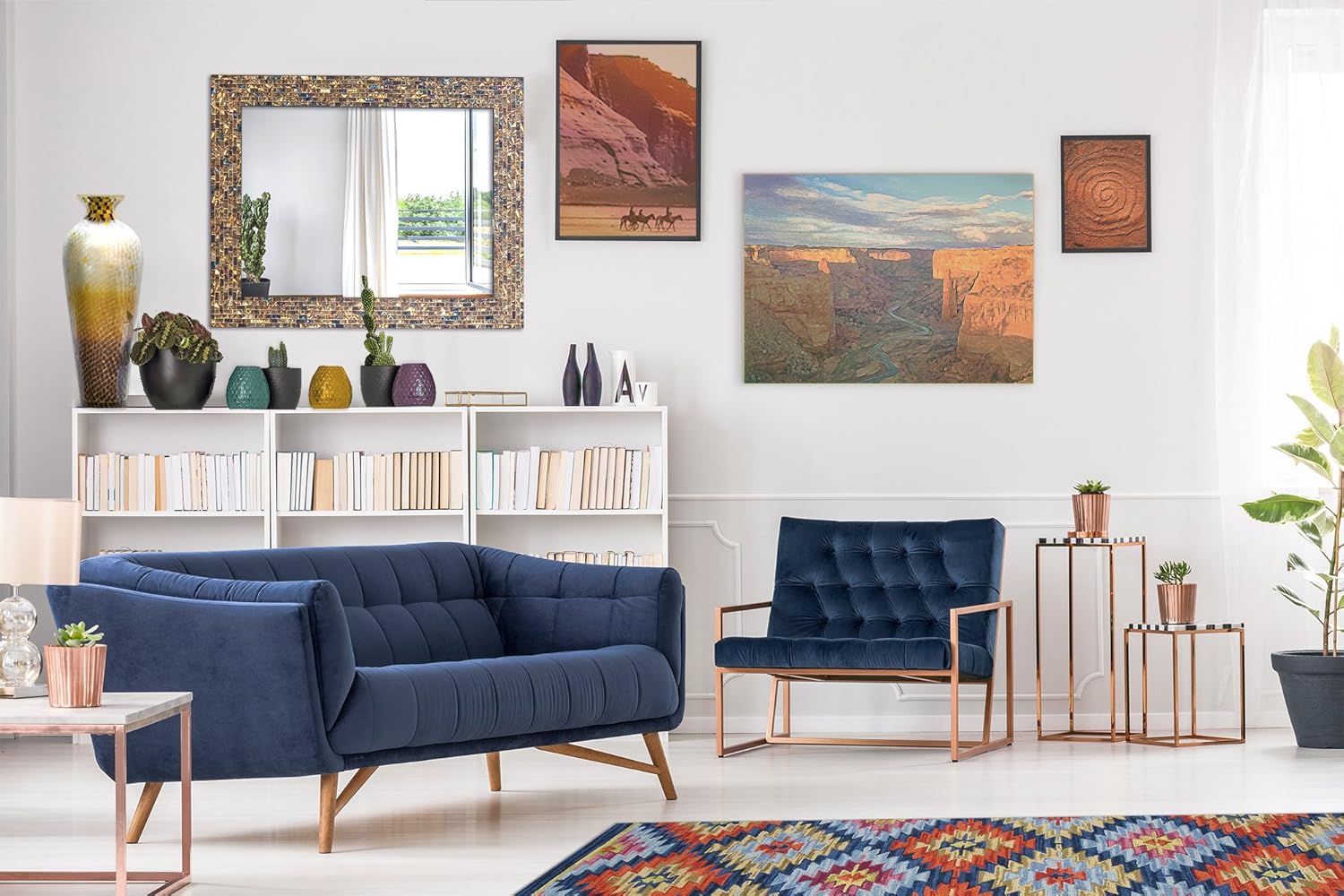 Multi-Colored & Gold, Luxe Mosaic Glass Framed Wall Mirror, Decorative Embossed Mosaic Rectangular Vanity Mirror/Accent Mirror (Large)