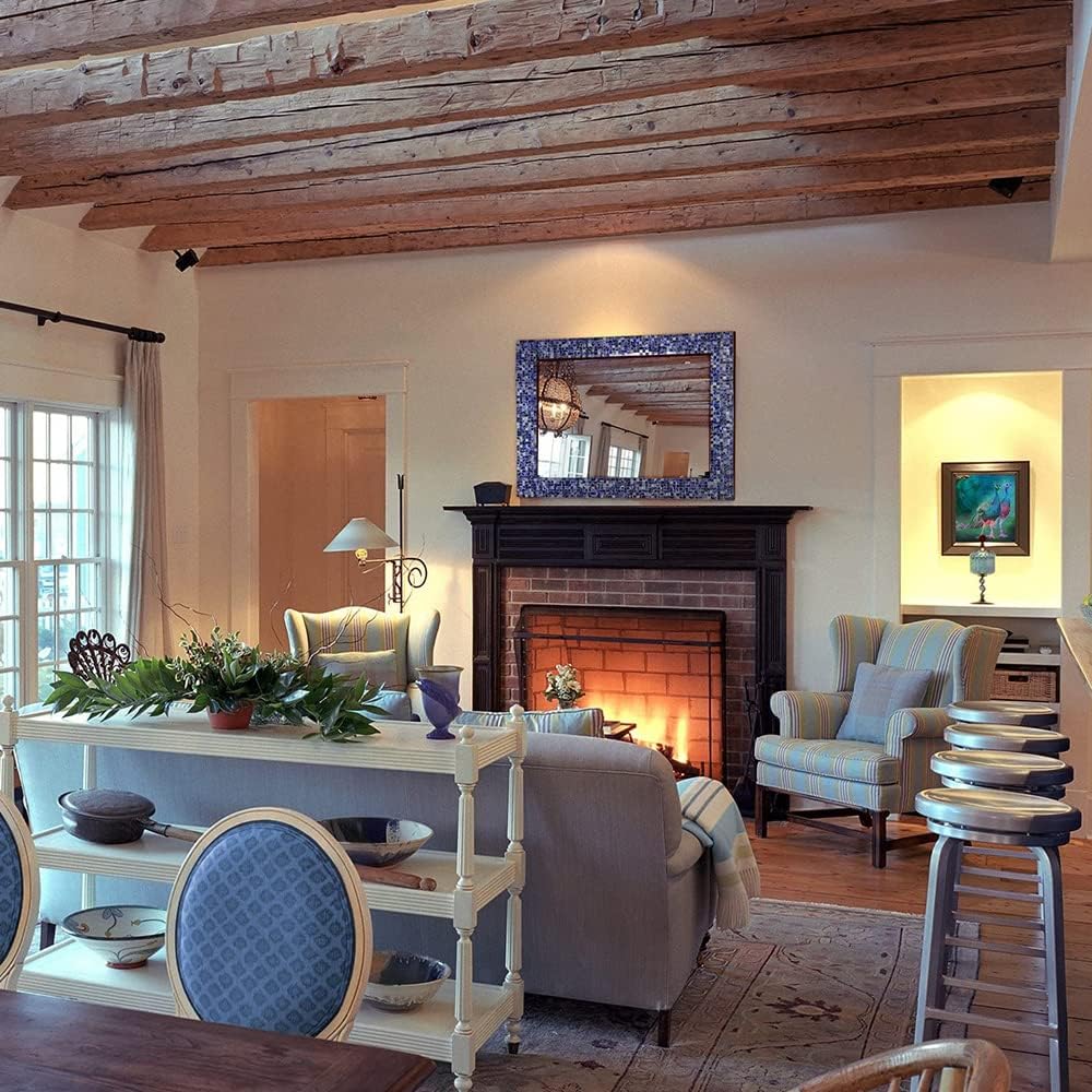 30" x 24" Glass Mosaic Framed Decorative Wall Mirror, Handmade Eclectic Accent Mirror, Unique Vanity Mirror (Lapis Blue)