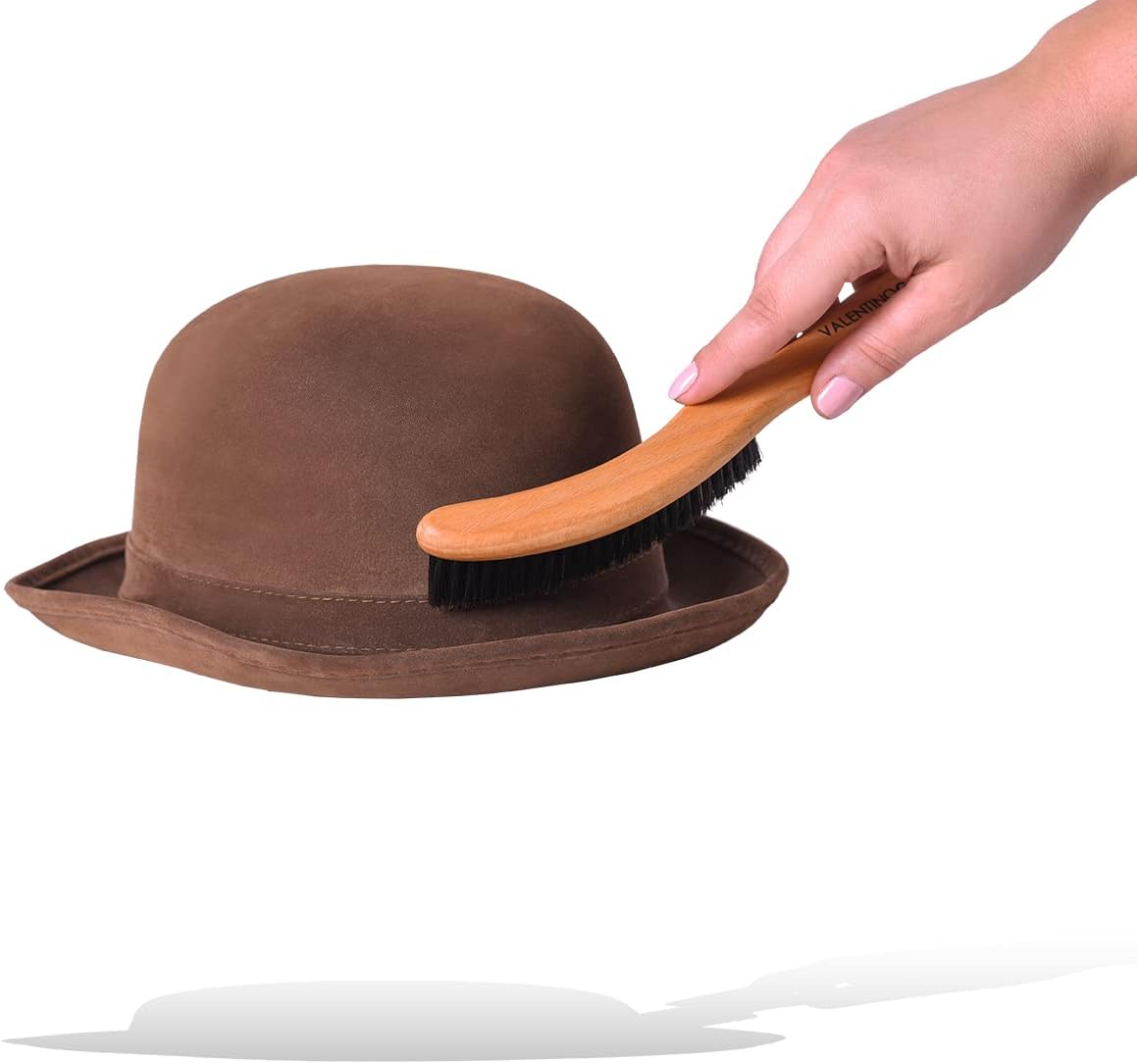 Valentino Garemi Traditional Hat Cleaning Brush | Remove Dust, Dry Stains, Rain Spots, Sweat Marks, Pet or Human Hair | Genuine Boar Hair Made in Germany (Black Bristles)
