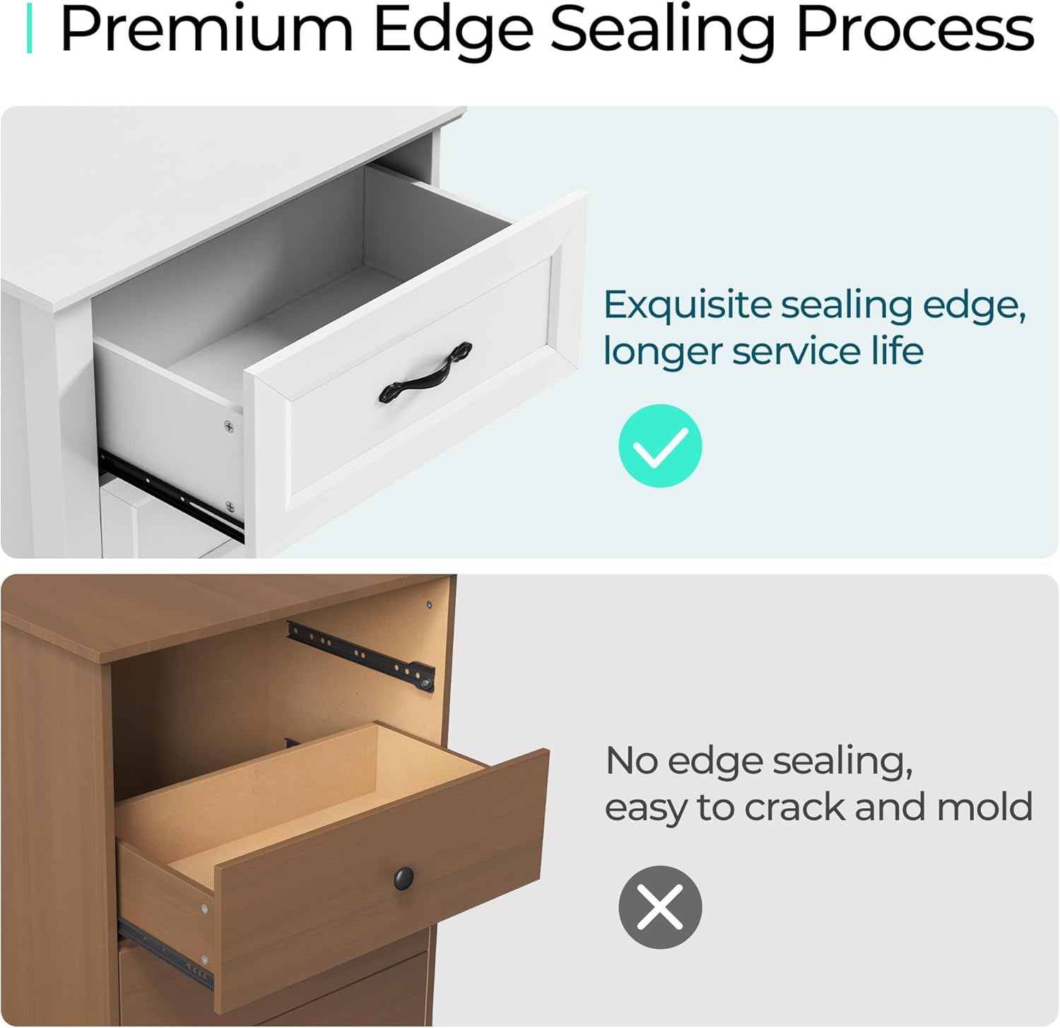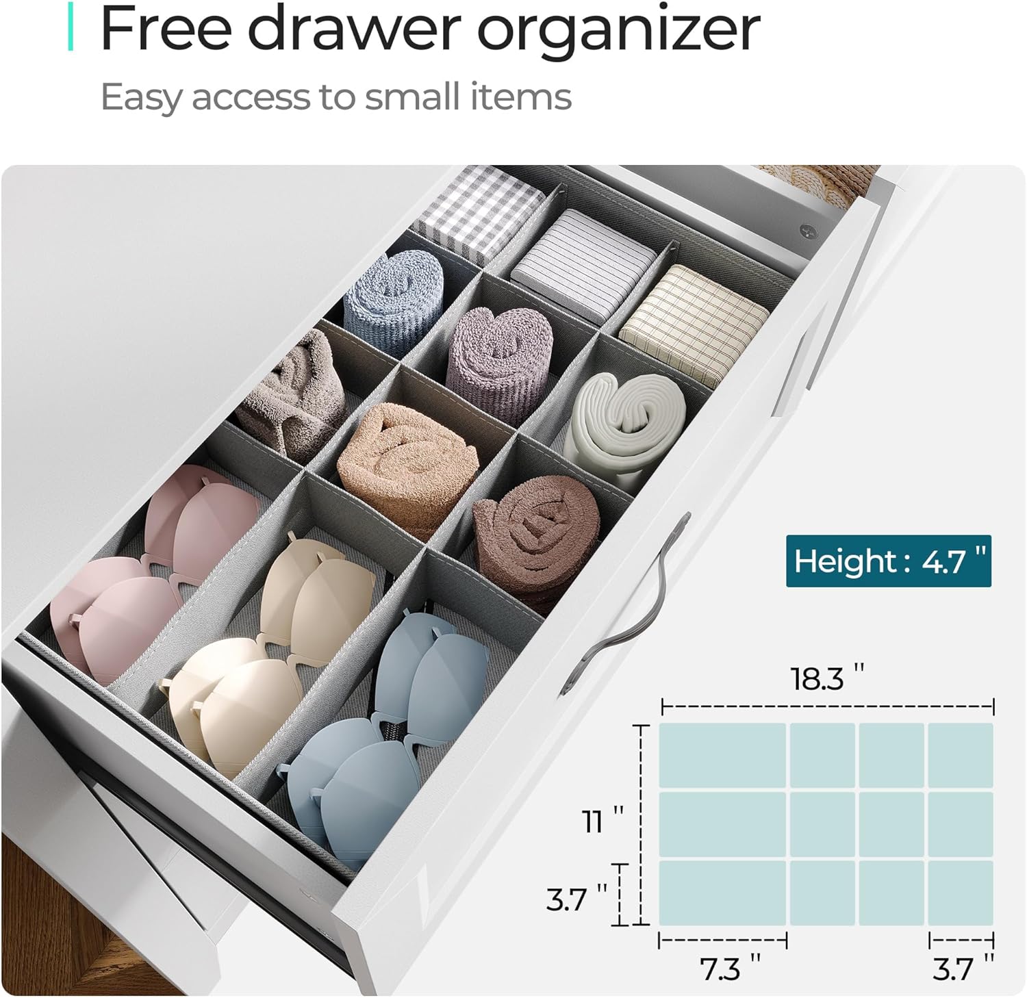 - [PREMIUN MATERIAL] - Crafted with CARB P2 & TSCA certified eco-friendly manufactured wood, we do care about your health. Exquisite sealing process gives the dresser a waterproof surface and smooth texture, making it long-lasting.
