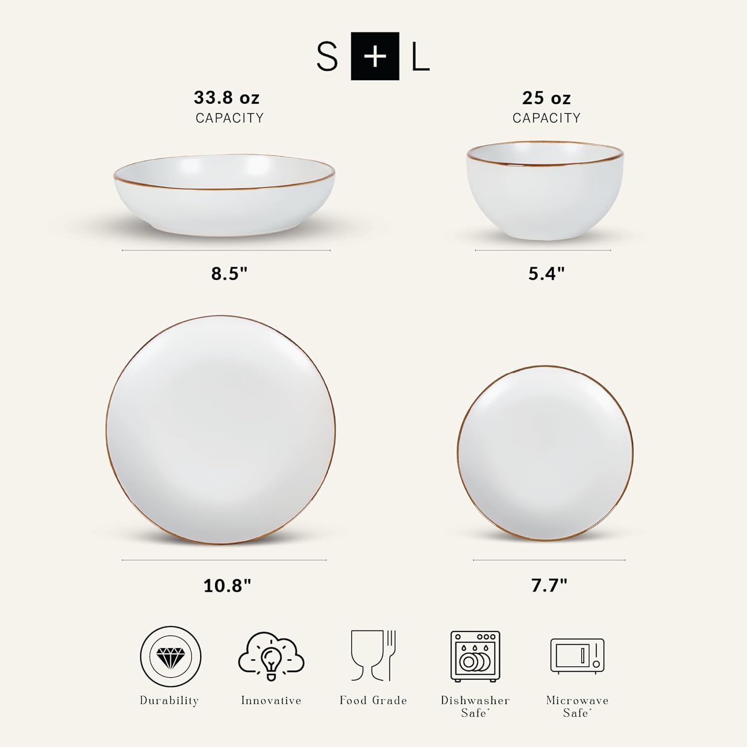 - 【SERVICE FOR 4】 Includes 16 pieces: four 7.76-inch salad plates, four 10.75-inch dinner plates, four 33.8fl.oz. pasta bowls, and four 25 fl.oz. round bowls. Perfect for everyday use or special occasions.