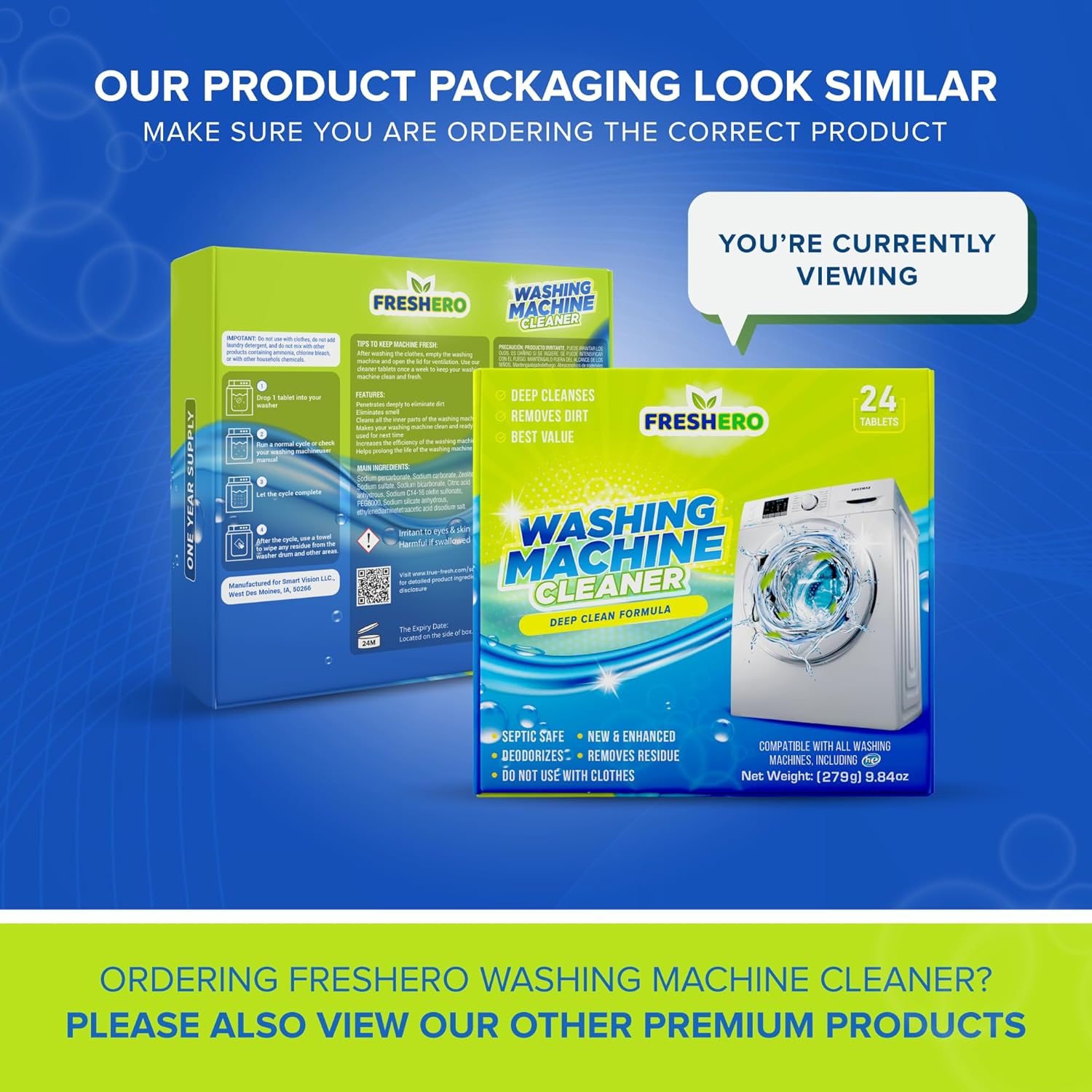 - Customer-Centric Solution: Designed with your convenience in mind, our 24-pack provides a 12-month supply, making it a highly cost-effective solution for maintaining the cleanliness and efficiency of your washing machine.