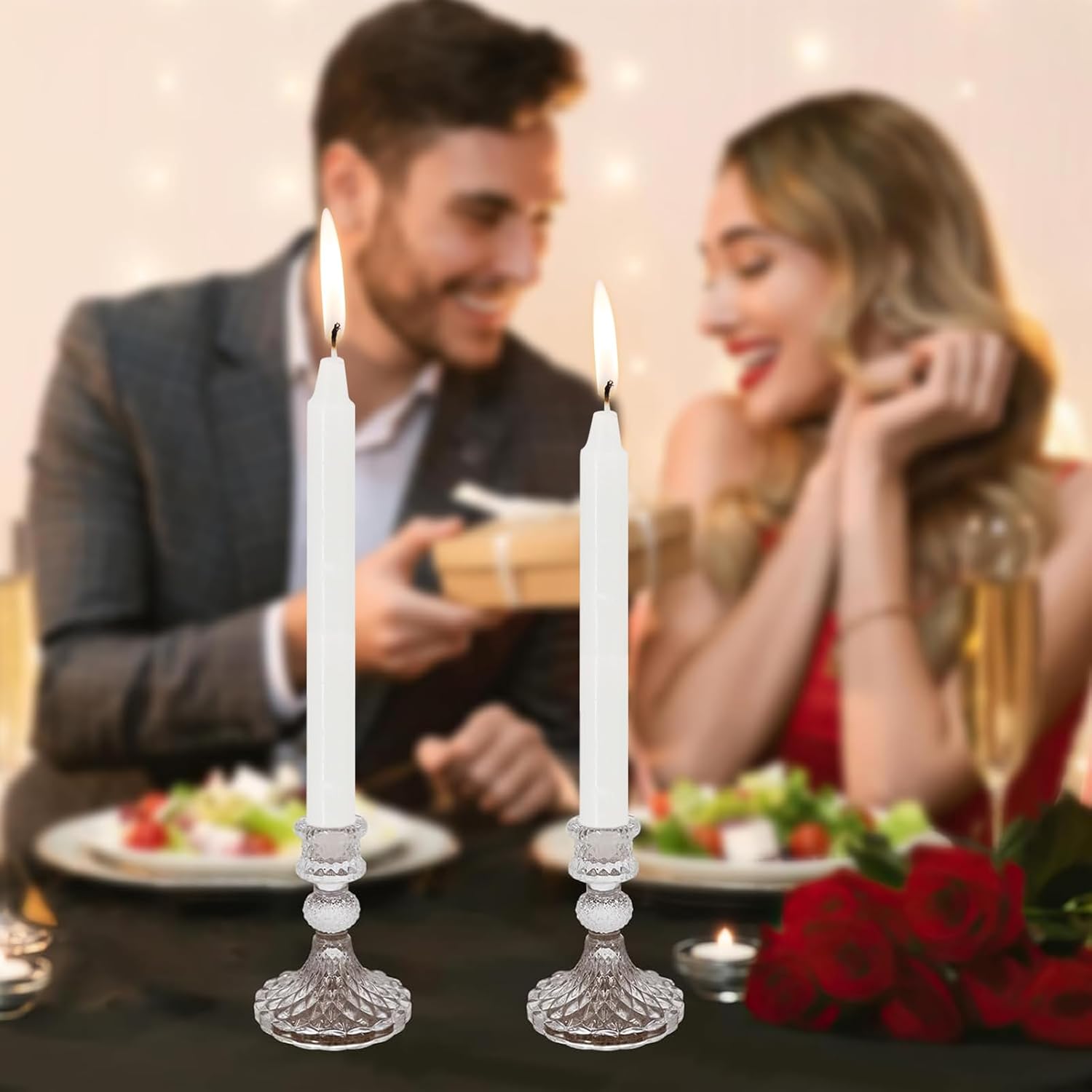 - Premium Material:Sudifor taper candle holders made of thick glass, sturdy, prevent it from easy cracking,can hold the candles securely, small glass taper candleholders are clear and transparent, pretty, go well with any color candles and tablescapes