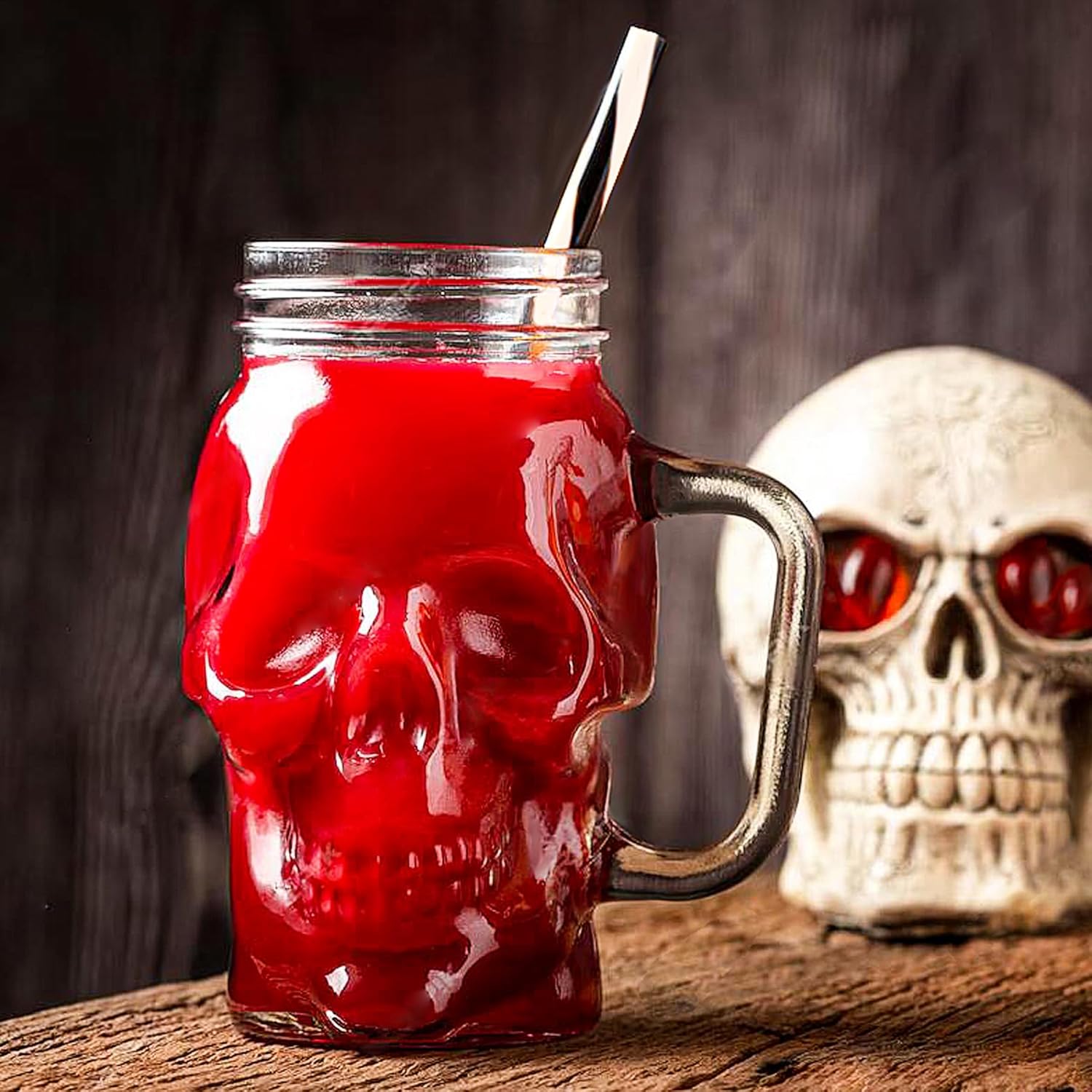 - Convenient Features: Each skull jar comes with a lid, straw, and handle, making it easy to carry around and enjoy your favorite drink on the go. The lid prevents spills and keeps your drink fresh, while the straw adds an extra fun element to your sipping experience.