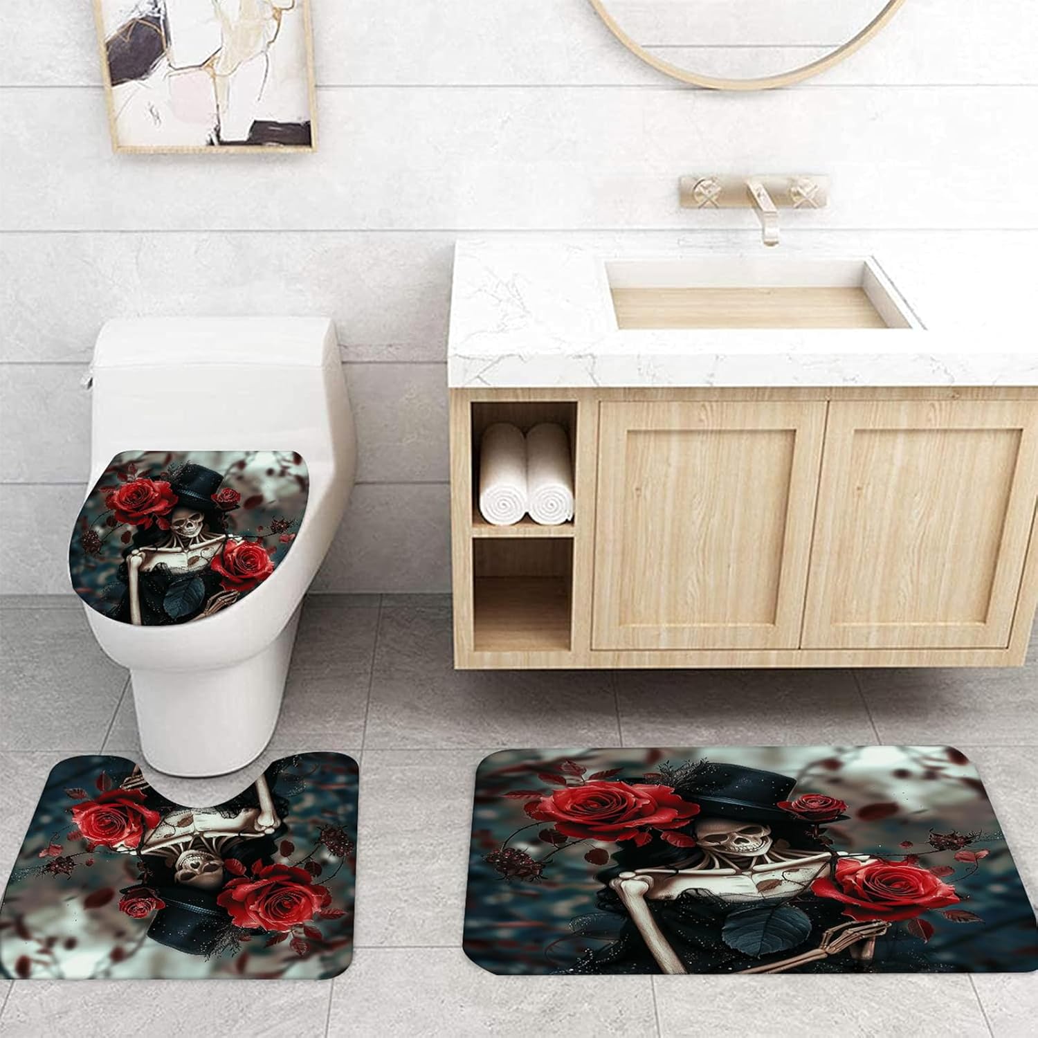 - 🛀 【Premium Material 】The Halloween Decorations are made of 100% polyester fabric,which has weight hem and great waterproof effect, eco-friendly. Bath rugs and U-shape bath mats are made of flannel, soft and almost odorless.
