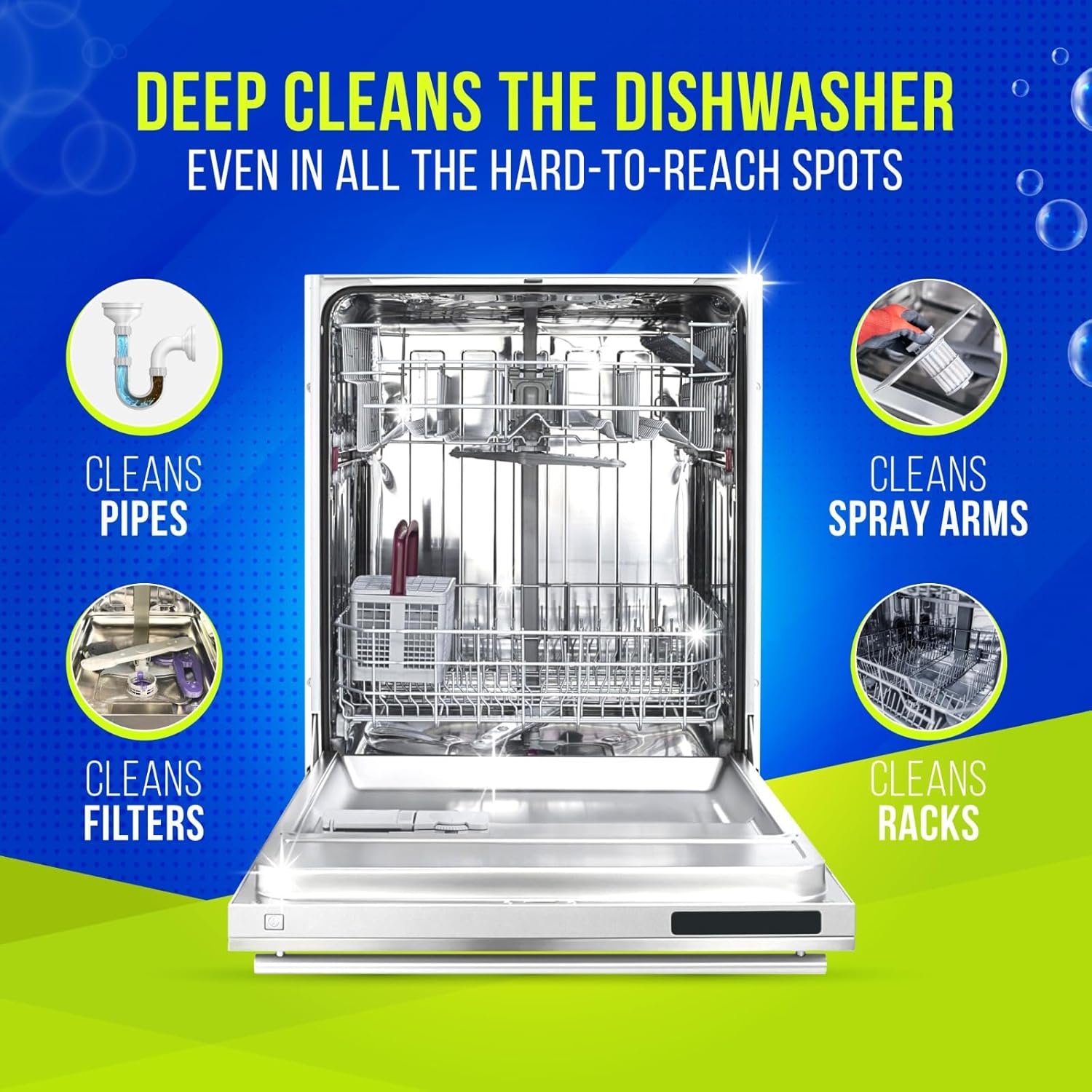 - Effortless Self-Cleaning Feature: Maintenance is a breeze with simple "drop-and-go" tablets—place one in your washer tub or dishwasher detergent tray, run a normal cycle, and let the tablets handle the deep cleaning without the need for scrubbing.
