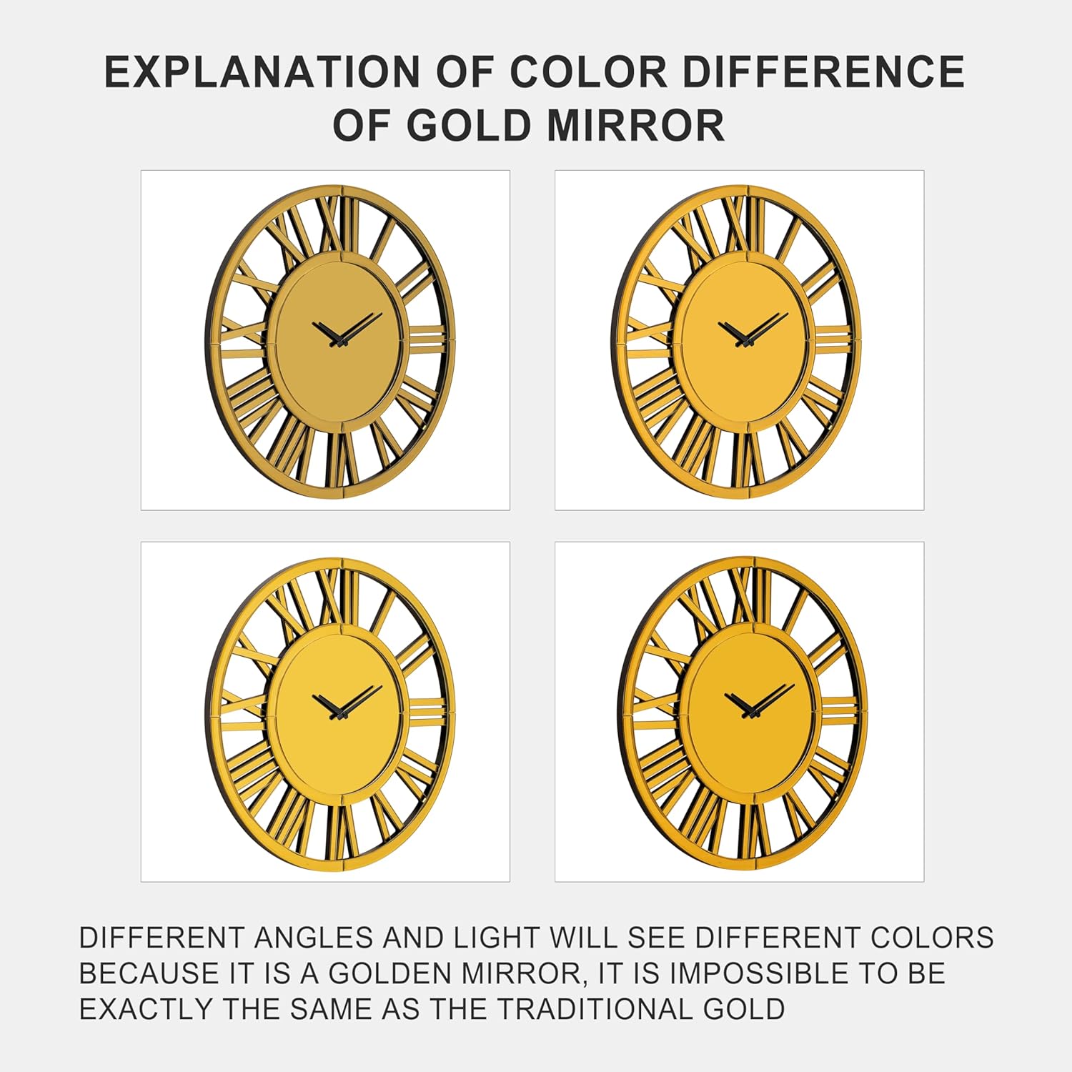 - 【Luxurious & Practical Clock】This gold mirrored wall clock is crafted with a glossy mirror surface and fine beveled edges, exuding elegance and sophistication.This oversized wall clock is more than a timepiece—it’s a luxurious decor piece that elevates your home with timeless elegance.