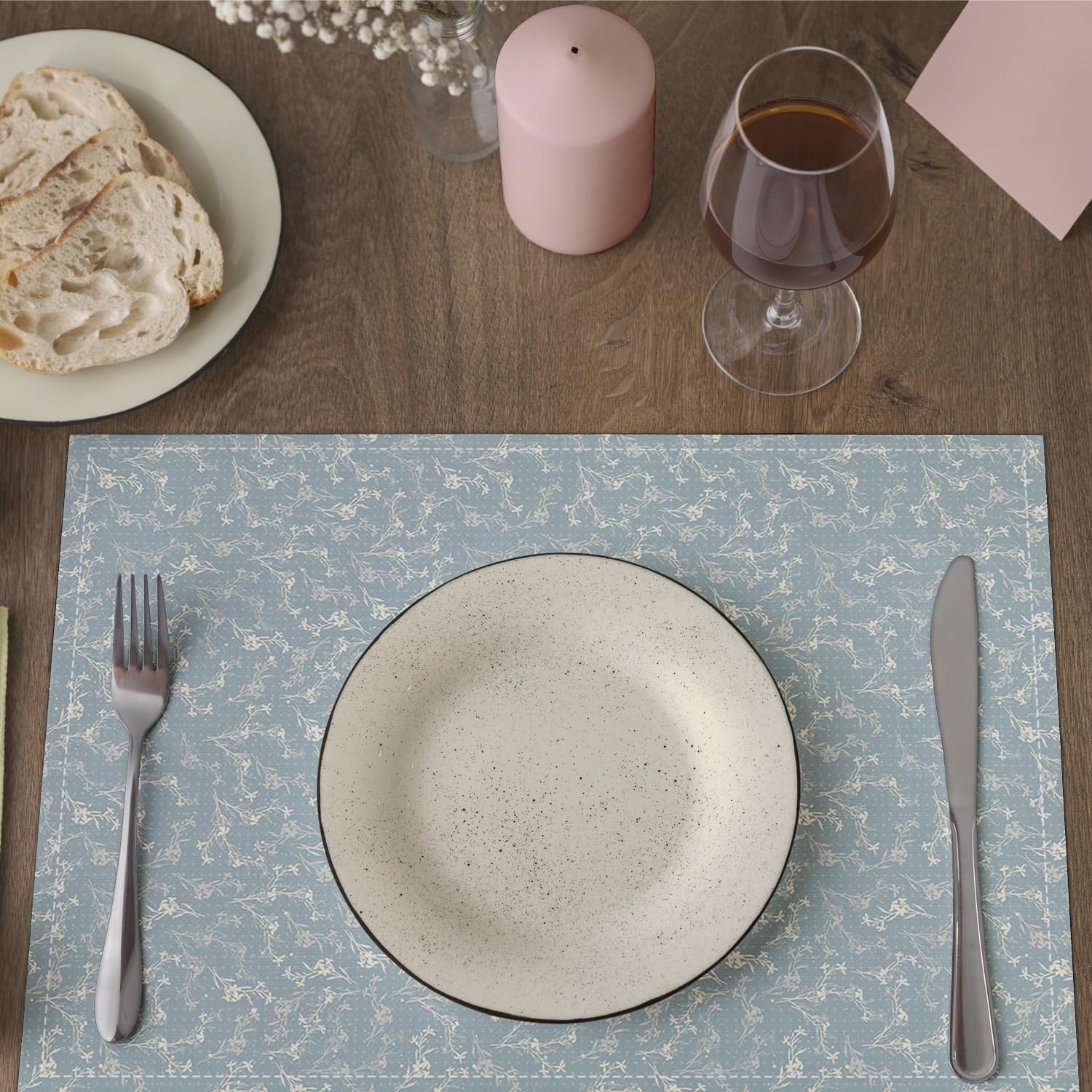 Blue Placemats Set of 4, Flower Table Mat for Home Kitchen, Restaurants, Outdoor Linen Washable Place Mats 12x18 inch Party Event Dining Decoration-13