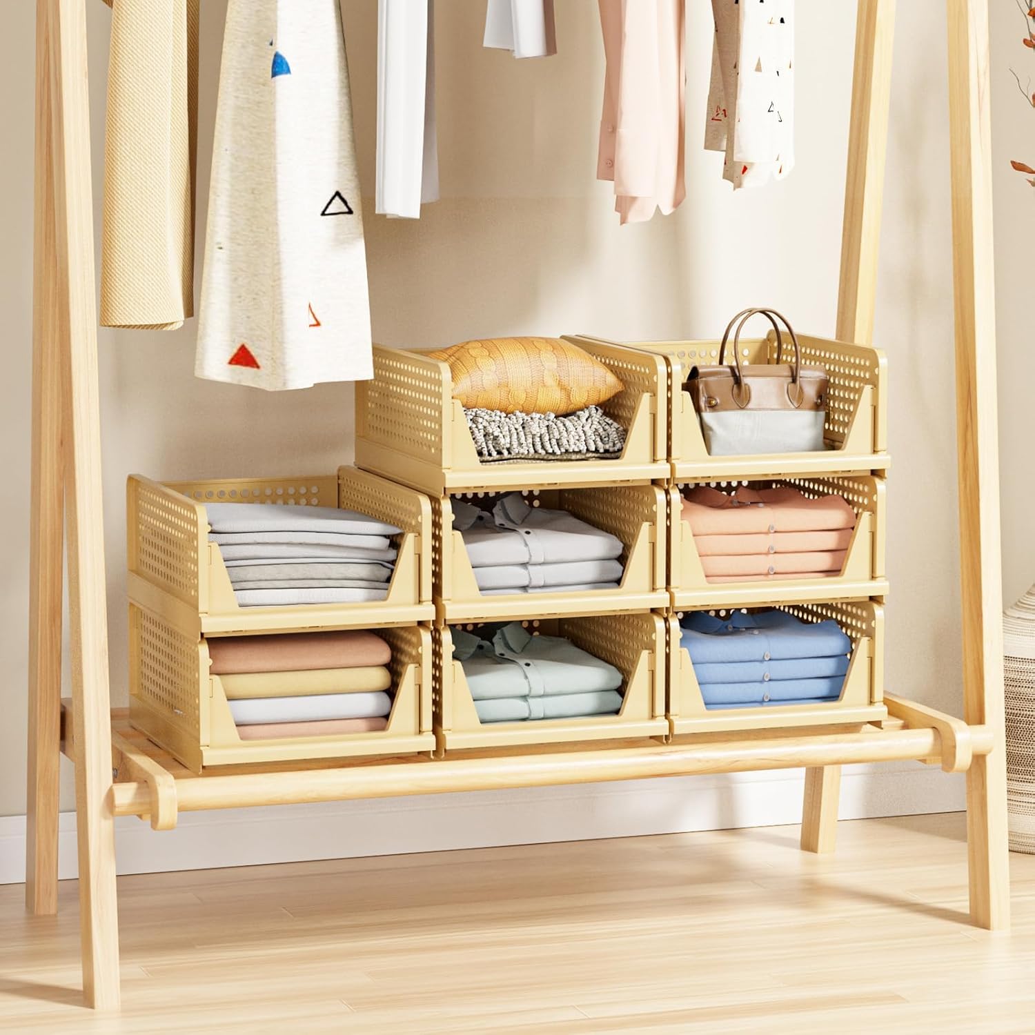 5 Pack Stackable Closet Storage Basket - Stackable Storage Bins, Multifunctional & Foldable Closet Organizer, Wardrobe Cupboard Space-Saving Hat Storage Drawer Organizer, Yellow